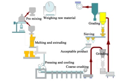 - خشک و خرد کردن مواد خروجی اکسترودر