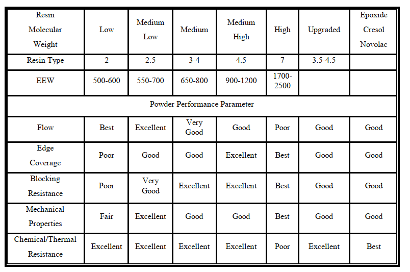 اين عوامل به هم وابسته بوده و در انتخاب رزين مناسب گـاهي ناچـارا بعـضي عوامـل بـه دلايـل مشکلات فرایندی، رفتار رئولوژيکي پودر در حين توليد و خـواص مکـانيکي نهـائي پوشـش صـرف نظـر می گردد.